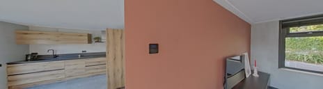 Zodra u binnenstapt, voelt u dat hier met liefde is gewerkt aan elk detail. De begane grond heeft een stoere betonvloer met vloerverwarming, die warmte en design moeiteloos combineert. De eethoek baadt in het licht door de grote raampartijen en openslaande deuren naar de prachtig aangelegde tuin. De keuken is strak vormgegeven in houtlook met zwarte accenten en heeft diverse inbouwapparatuur. De badkamer is op de begane grond gelegen en is keurig afgewerkt met visgraattegels, een regendouche en een natuurstenen waskom. Aan de voorzijde is een multifunctionele kamer, hier is een garderobe kast en de aansluitingen voor de wasmachine en droger. De slaapkamer op de verdieping ademt rust en ruimte, met witgeschilderde balken en veel natuurlijke lichtinval. Het grote dakraam zorgt voor een fijne, lichte sfeer en uitzicht op het groen. De lichte vloer en neutrale tinten versterken het gevoel van ruimte. Een praktische werkhoek en ruime opbergmogelijkheden maken de kamer compleet.