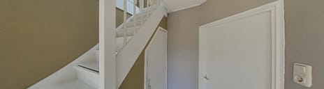 Via de eigen oprit (plaats voor twee auto's) loopt u naar de voordeur/entree. Hierachter bevindt zich een ruime hal met met meterkast en trapopgang naar de verdieping. Onder de trap bevindt zich een praktische trap-/voorraadkast.