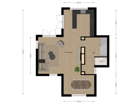 Loop verder en je komt in de royale woonkamer terecht. Dankzij de flinke raampartijen schijnt het daglicht hier gul naar binnen, wat zorgt voor een uitnodigende en ontspannen sfeer. De vrij indeelbare ruimte is voorzien van een prachtige houten vloer en biedt tal van mogelijkheden: een gezellige zithoek bij het raam, een speelplekje voor de kids, misschien zelfs een fijne thuiswerkplek; jij kiest! Hier ervaar je echt het ultieme wooncomfort.
