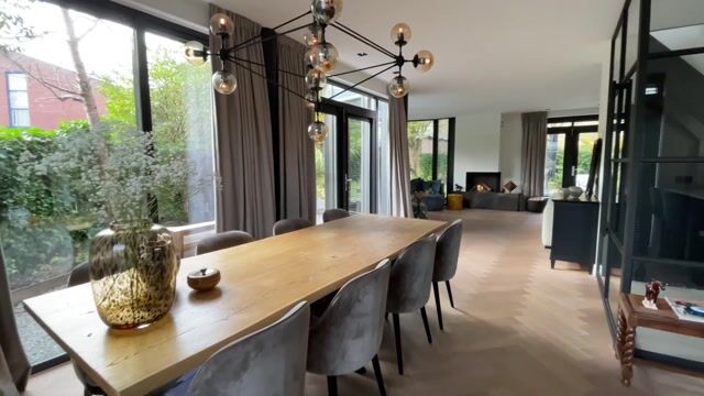 The living room opens onto the beautiful garden room with a sturdy folding door that can be opened completely. This room is a wonderful place to relax in all seasons and offers a beautiful view of the lovely garden. The garden surrounds the villa and has several seating areas and a back entrance. Due to the villa's location on the plot, there is always sunshine somewhere in the garden. There is also a practical stone shed for storing garden equipment. The multifunctional garage (also accessible from inside) is accessible via the driveway and has a sleek floor, electricity, water supply, and two skylights. The entire ground floor, including the garage and garden room, has underfloor heating.