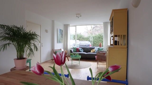 De woonkamer is heerlijk licht dankzij de grote raampartijen aan zowel de voor- als achterzijde. Aan de voorzijde is ruimte voor een comfortabele zithoek, terwijl de achterzijde plaats biedt aan een royale eettafel. Vanuit hier geven openslaande deuren direct toegang tot de achtertuin, wat zorgt voor een prettige verbinding tussen binnen en buiten.
