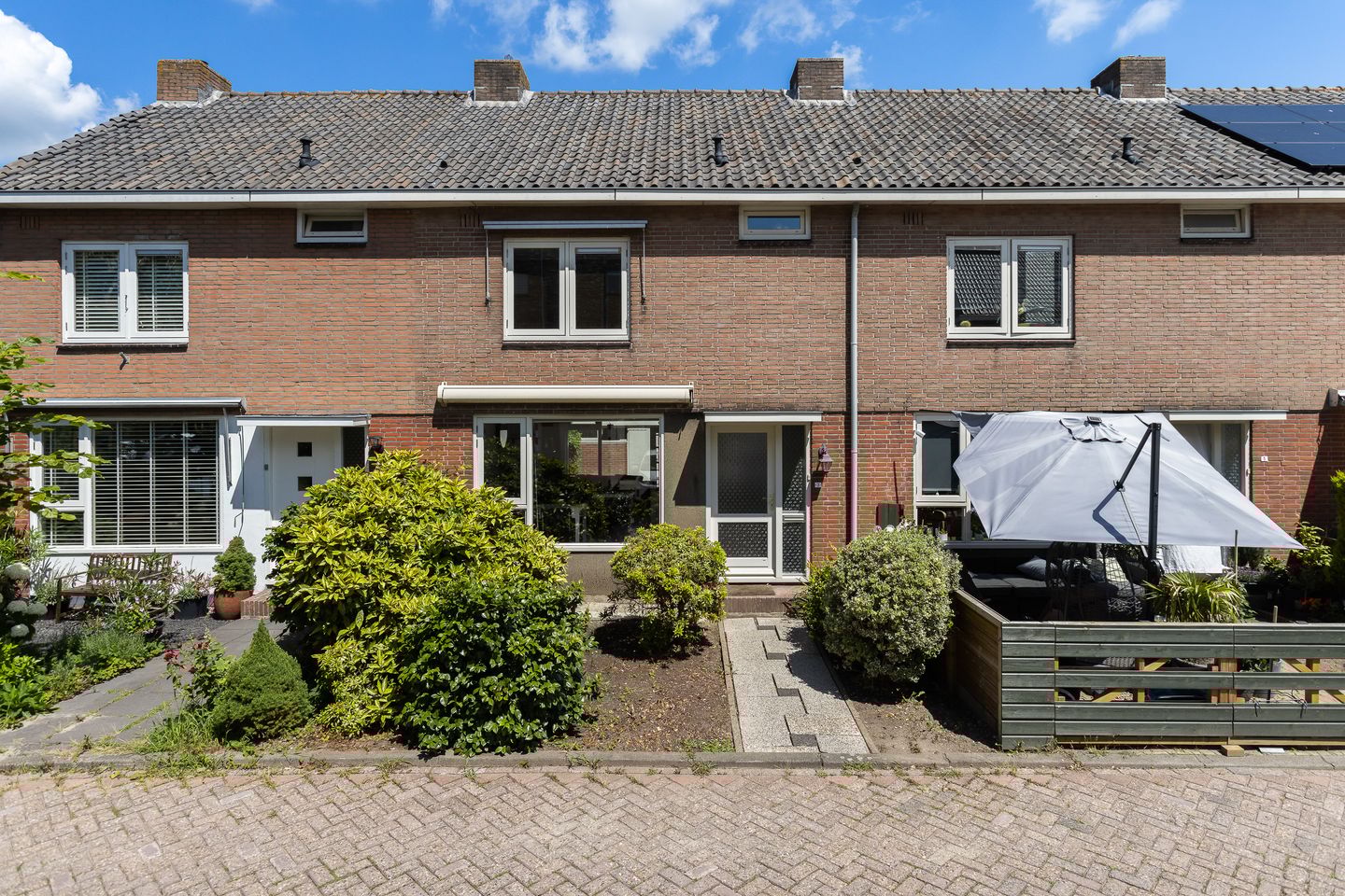 De voortuin is groen aangelegd en een heerlijke plek om in het zonnetje te zitten. De achtertuin ligt op het oosten en is via de keuken bereikbaar. Achter de woning bevindt zich tevens een berging van ca. 8 m² voor fietsen en tuingereedschap.
