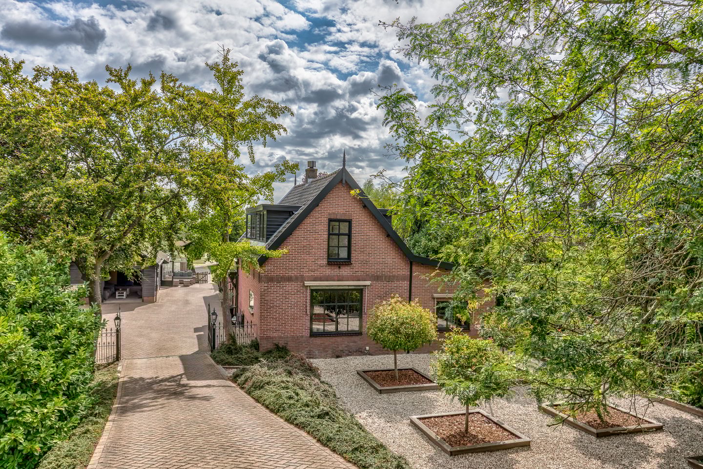 De royale tuin is fraai aangelegd en voorzien van gazon, borders met beplanting en diverse terrassen. Door de ligging heb je altijd een plekje in de zon of schaduw en veel privacy. Tevens is er een kas en een kippenren. Achterin de tuin bevindt zich de overkapping met buitenkeuken met eethoek, heerlijk gelegen aan het water van de wetering. Vanaf hier heb je een fantastisch uitzicht over het polderlandschap. Hier kun je optimaal genieten van het buitenleven.