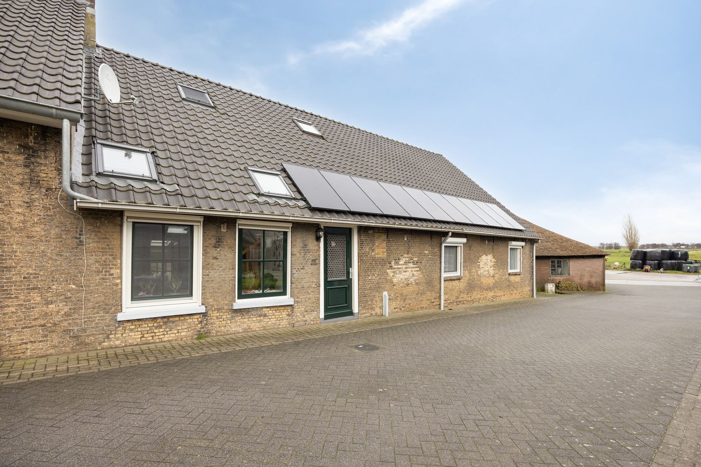 Je bereikt de woning via een overpad vanaf de Schaapjeszijde. Eenmaal op het erf, zie je direct het royale terrein, de voormalige hooiberg die nu dienstdoet als schuur, en de serre die zich uitstrekt aan de noordzijde van de woning. Deze serre is veel meer dan een tussenruimte; het is een tweede woonkamer met houtkachel en zitgedeelte, waar je het hele jaar door kunt genieten van het buitengevoel.