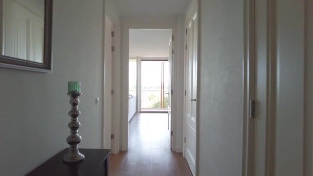 Woonkamer: Deze ruime woonkamer voelt heerlijk licht en zonnig aan, mede dankzij de grote raampartijen over de gehele breedte van de kamer met het fantastische uitzicht over de weilanden, waardoor je elke dag dat fijne gevoel van rust en ruimte ervaart. Omdat dit een hoekappartement is, profiteer je van extra ramen aan de zijkant van het appartement. Via de schuifpui loop je zo het mooie balkon op. De eiken houten vloer doet erg prettig aan.