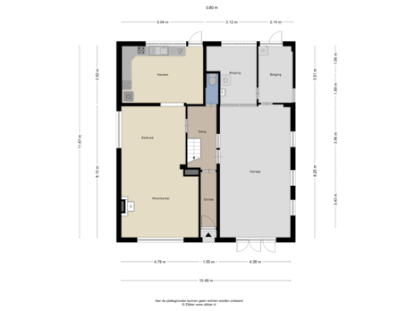 We komen binnen in de entree met meterkast en toegang tot de gang met diverse vertrekken. De woonkamer is aan de linkerzijde van de woning en heeft een afmeting van 815x479 cm. Door de rechthoekige vormgeving is de woonkamer gemakkelijk en ruim in te delen. Aan de voorzijde van de woonkamer is nu de zithoek gecreëerd met uitzicht op de beschutte voortuin wat veel privacy geeft. In de woonkamer is een openhaard aanwezig waar je heerlijk van kunt genieten tijdens de donkere winterdagen. Essentieel is dat je de open haard altijd laat controleren. De woonkamer geeft ruimte voor het plaatsen van een forse eethoek en kasten. Door de hoeveelheid ramen is er veel natuurlijk lichtinval en uitzicht over de royale tuin. De woonkamer geeft toegang tot de semi-open keuken. De keuken heeft een afmeting van 504x352 cm en maakt dan ook dat je naast veel opberg- en werkruimte ook een extra buffetkast of een ontbijttafel kunt plaatsen. De keuken is nu in een hoekopstelling en is voorzien van apparatuur als een koelkast, een gaskookplaat, een oven, een vriezer en de witgoed opstelling. Vanuit de keuken is er zicht op de tuin en de loods. Via de keuken kun je de tuin bereiken. De keuken is functioneel maar geeft jou ook de ruimte om geheel naar eigen wens te moderniseren.