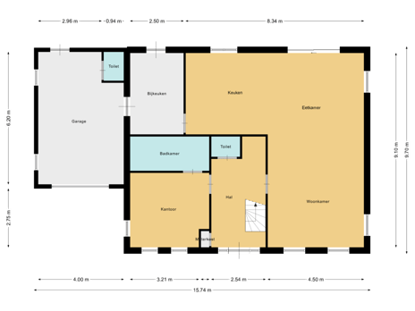 Neeskens Makelaars meet de woningen in volgens de laatste Nen-normen (NEN2580). Verschillen in de meetuitkomsten zijn niet volledig uit te sluiten door afrondingen, interpretatieverschillen of beperkingen tijdens het uitvoeren van de inmeting.