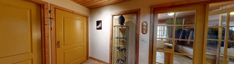 Bij binnenkomst valt direct de ruime entree op, waar zich een toilet en een praktische bijkeuken bevinden. Vanuit de entree zijn tevens twee werk-/praktijkruimtes bereikbaar (voorzien van een infrarood sauna) – ideaal voor thuiswerken of een creatieve invulling. Via één van deze ruimtes bereikt u een tweede hal, die toegang geeft tot de royale sauna én het woonverblijf.