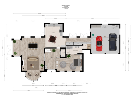 De hal naast de keuken is voorzien van een vaste kastenwand en aansluitpunten voor de wasmachine en droger. Via deze hal komen we in de dubbele garage, een veelzijdige ruimte met een vliering, een keukenblok, werkbank en verwarming. De perfecte plek voor hobby’s, het stallen van voertuigen of extra opslag.