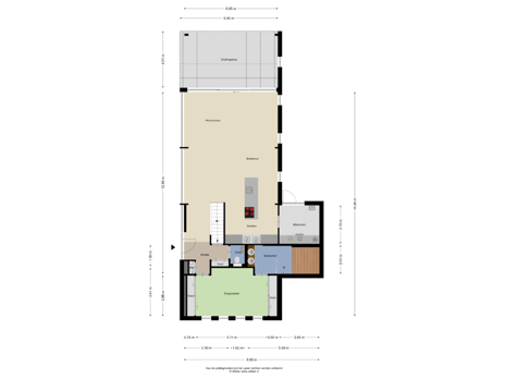 Toelichtingsclausule BBMI: de woning is ingemeten conform de branchebrede meetinstructies (BBMI), afgeleid van de NEN 2580 normering. De Meetinstructie is bedoeld om een meer eenduidige manier van meten toe te passen voor het geven van een indicatie van de gebruiksoppervlakte. De Meetinstructie sluit verschillen in meetuitkomsten niet volledig uit, door bijvoorbeeld interpretatieverschillen, afrondingen of beperkingen bij het uitvoeren van de meting.