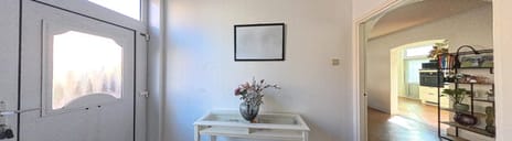 Hal/entree met de meterkast (8 groepen, 1 aardlekschakelaar en slimme meters), deels betegeld hangtoilet met fonteintje, trapopgang en toegang tot de woonkamer.