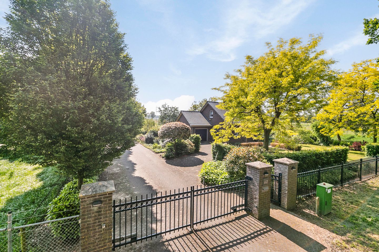 * The driveway is closed by a sliding, electrically operated gate.