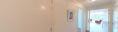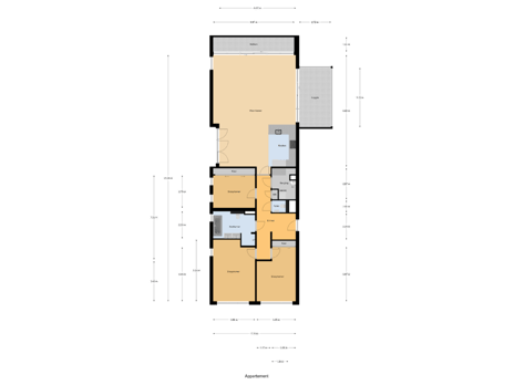 Entree, hal met toegang tot drie slaapkamers, de badkamer, toilet, inpandige berging en de riante living met open keuken in het centrum en toegang tot de Loggia, het balkon en het "franse" balkon.