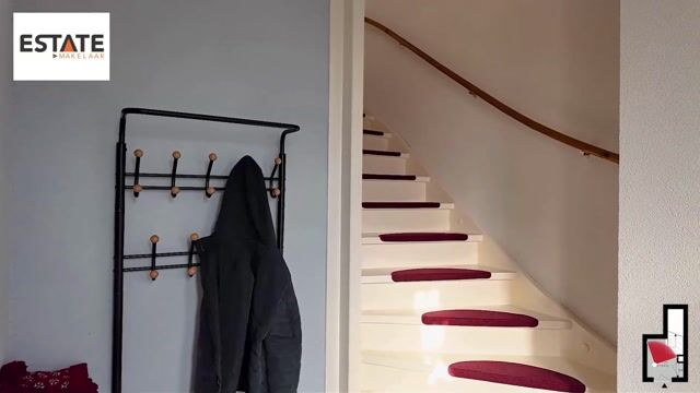 Ruime overloop van circa 1.10x4.31 met een raam en een open trap naar de 2 verdieping. Vanuit de hal heb je toegang tot de woonkamer, balkon en de keuken. Verder in de hal is de moderne toiletruimte bereikbaar met een nette combinatie van tegels, een hangend toilet en een fonteintje in een wandmeubel.