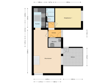Entree/hal voorzien van fraaie laminaatvloer, meterkast (7 groepen + 2 aardlekschakelaars) en toegang tot zowel de inpandige berging, woonkamer, slaapkamer als de badkamer.