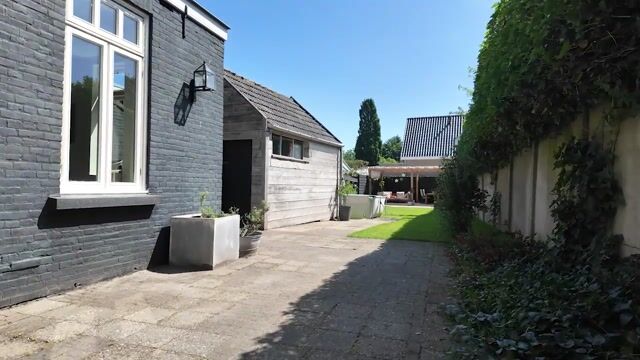 De achtertuin (ca. 32,5 m. diep en gemiddeld 7 m. breed) ligt op het zuidoosten en is in 2025 grotendeels opnieuw aangelegd. U vindt er naast de woning oude klinkers, terwijl u verder in de tuin een ruim terras met grote, moderne plavuizen vindt. Met het 90 m² gazon, vaste beplanting en de houten pergola (6,36 m. x 3,60 m.) met eventueel spandoek een heerlijke plek. Heel praktisch zijn de berging (4,20 m. x 3,32 m.; v.v. elektra en vliering) en de garage aan de achterzijde van de tuin. Ook is de tuin recent v.v. elektrapunten. U kunt de tuin betreden via een zijpoort aan straatzijde of via de garage aan de achterzijde van deze gezellige tuin.