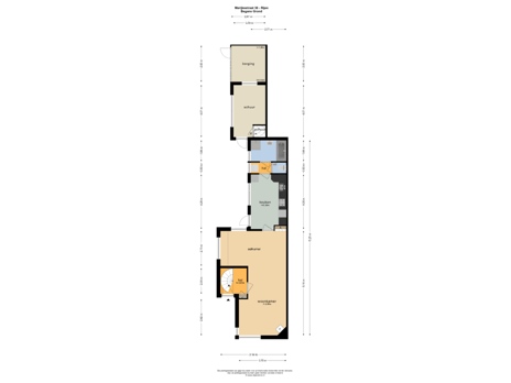 In de hal bevindt zich de meterkast (4 groepen) en garderobe. Er ligt een tegelvloer. Er is een loopdeur naar de woonkamer en een wenteltrap naar de eerste verdieping.