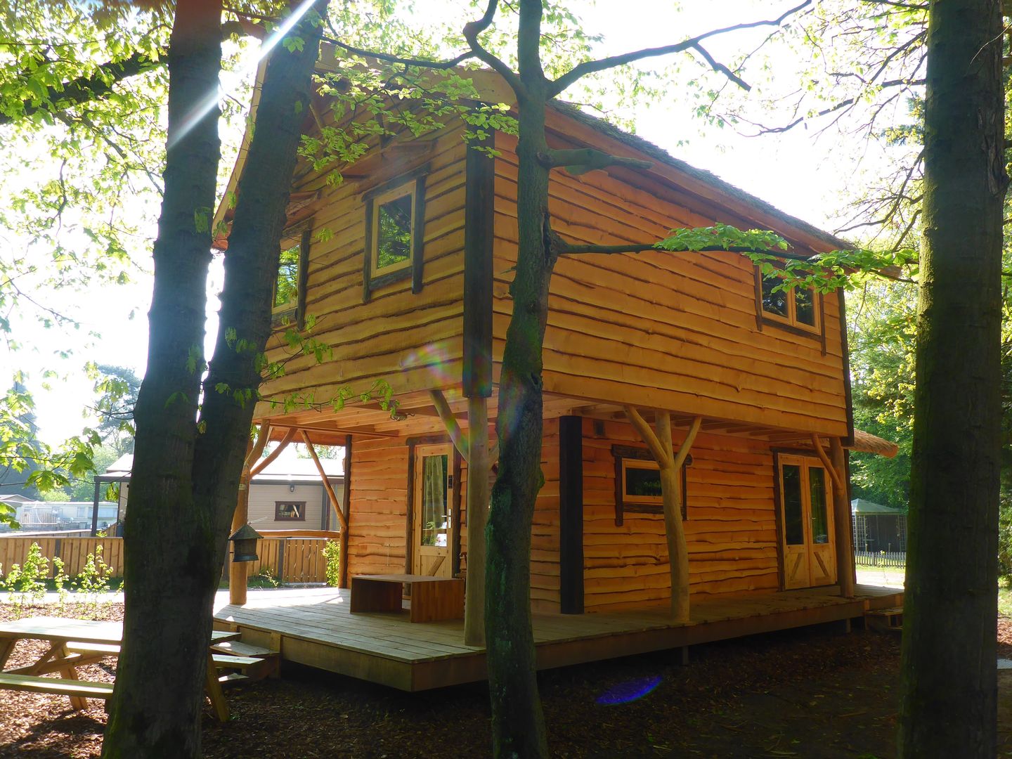 Onze natuurlijke boshuizen zijn goed geïsoleerd met een hr-ketel. Drie ruime 2-persoons slaapkamers op de eerste verdieping met goede stevige matrassen. Een ruime woonkamer met open keuken, eethoek en zithoek. Met de hand afwassen, dat wel, maar hoe gezellig is dat! Uit eten in zaal ‘d’n Appel’ op het park, barbecueën of zelf een lekkere maaltijd bereiden kan natuurlijk allemaal. Geniet van de ontbijtservice of haal zelf verse broodjes bij de receptie.