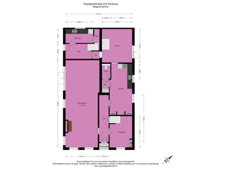 Via de voortuin bereik je de entree en kom je binnen in een ruime hal die toegang geeft tot de verschillende vertrekken. Vanuit de hal zijn de woonkamer, keuken, eetkamer en middels een trap de slaapkamers bereikbaar.
