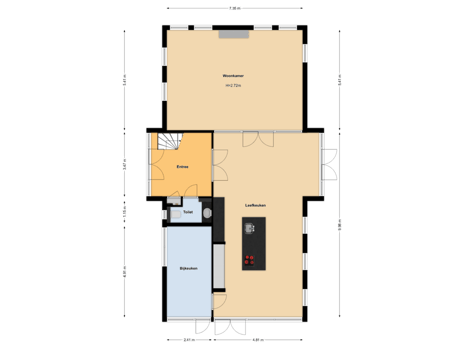 Door de royale opzet is er voldoende ruimte voor een grote eettafel. Aan twee kanten openslaande deuren naar buiten. De visgraat vloer en de hoge zwart stalen binnen kozijnen geven het geheel een moderne chique uitstraling.