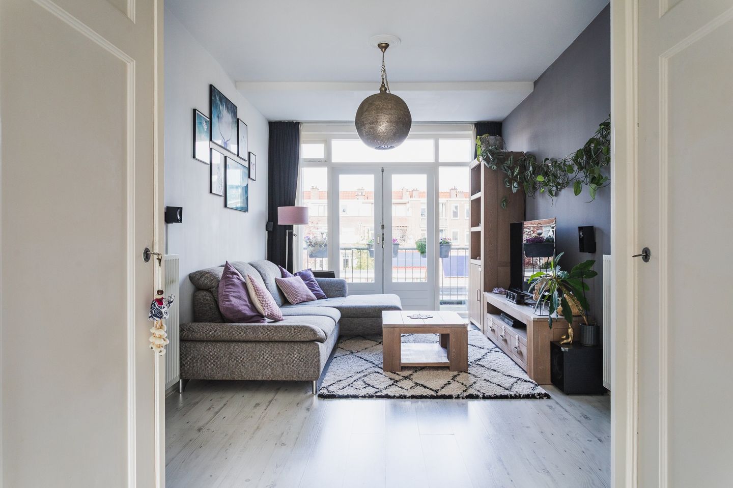 Through the shared entrance, you reach the apartment’s front door. The hallway includes a meter cupboard, a separate toilet, and access to all rooms.