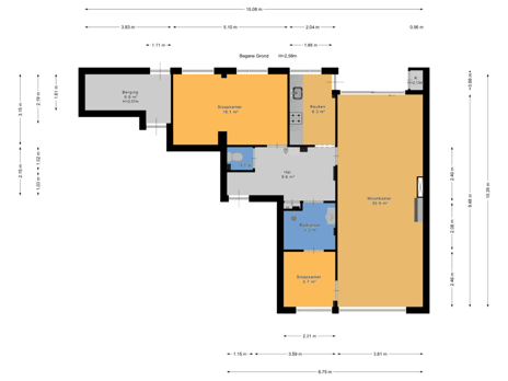 - 158 m² (10.37 metre deep and 15.22 metre wide)