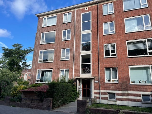 Het 4-kamer appartement ligt op de hoek van de Jozef Israëlslaan met leuk en levendig vrij uitzicht.