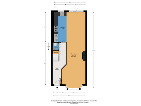 - 39 m² (7.40 metre deep and 5.25 metre wide)