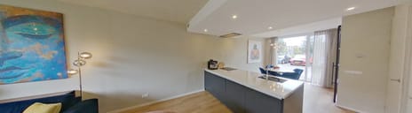 Via een fraaie stalen deur toegang tot de royale woonkeuken met groot kook-/spoeleiland en luxe apparatuur: inductiekookplaat, afzuigschouw, twee ovens, vaatwasser en koel-/vriescombinatie.