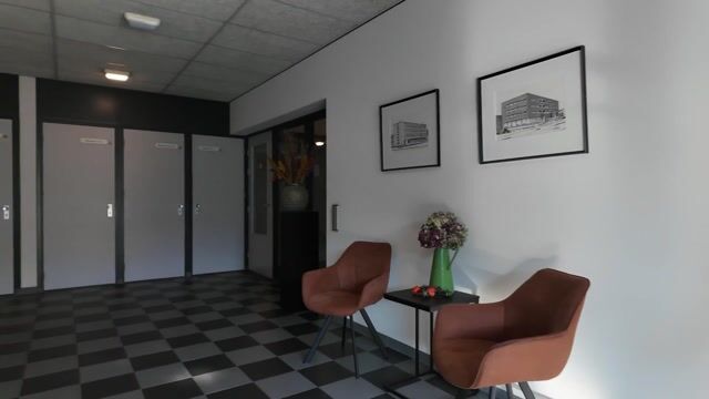 De centrale, afgesloten entree beschikt over een video-intercom systeem. Hier bevinden zich ook de brievenbussen. De voordeur geeft toegang tot de algemene ruimte, het trappenhuis en de liftinstallatie.