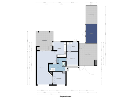 Via de hal is de voormalige inpandige garage bereikbaar, momenteel in gebruik als hobby- of werkkamer. Aansluitend bevindt zich een praktische berging met witgoedaansluitingen en vlizotrap naar een ruime bergzolder met de opstelling van de cv-installatie.