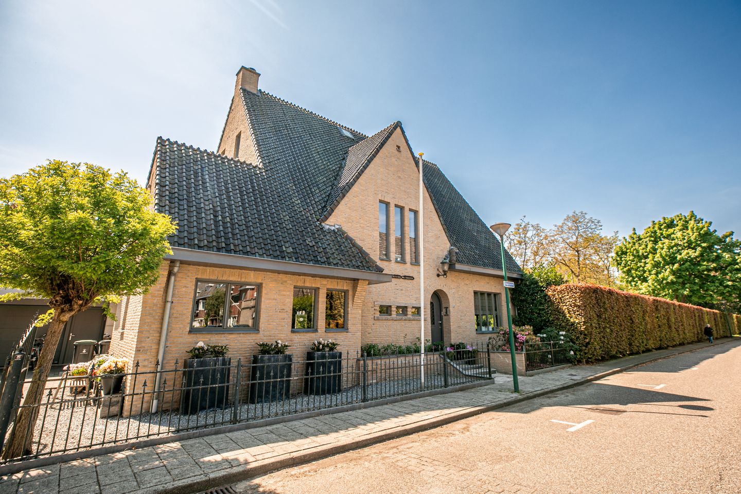 Veel huizen aan Roerzicht moeten bij verkoop vaak up-to-date gemaakt worden. De bewoners wonen er immers al vele jaren. Maar bij Roerzicht 9 hoef je helemaal niets te doen. Dat gegeven en de architectuur van Pierre Cuypers jr. maakt dat we bij MKLRS. dit ook het mooiste huis van Roerzicht vinden. Een huis met een bijzondere verwijzing in de geschiedenis van de roemrijke architectenfamilie Cuypers. Want op de voorgevel van Roerzicht 9 prijkt de huisnaam "Nabij Buiten". De naam is een verwijzing naar een buitenhuis uit de 18e eeuw waar Pierre Cuypers sr. vanaf 1865 in Amsterdam in woonde. Dit huis droeg ook de naam "Nabij Buiten" en lag destijds nog aan de rand van de stad. Jos Cuypers, zijn zoon, ontwierp vervolgens in opdracht van zijn vader Pierre Cuypers sr. op die locatie een luxe pension, Oud Leyerhoven genaamd. Kleinzoon Pierre Cuypers jr. ontwierp vervolgens in Roermond het woonhuis Roerzicht 9 en vernoemde Roerzicht 9 met "Nabij Buiten" naar het oude buitenhuis van zijn opa. Dit huis lag destijds immers ook aan de rand van de stad.