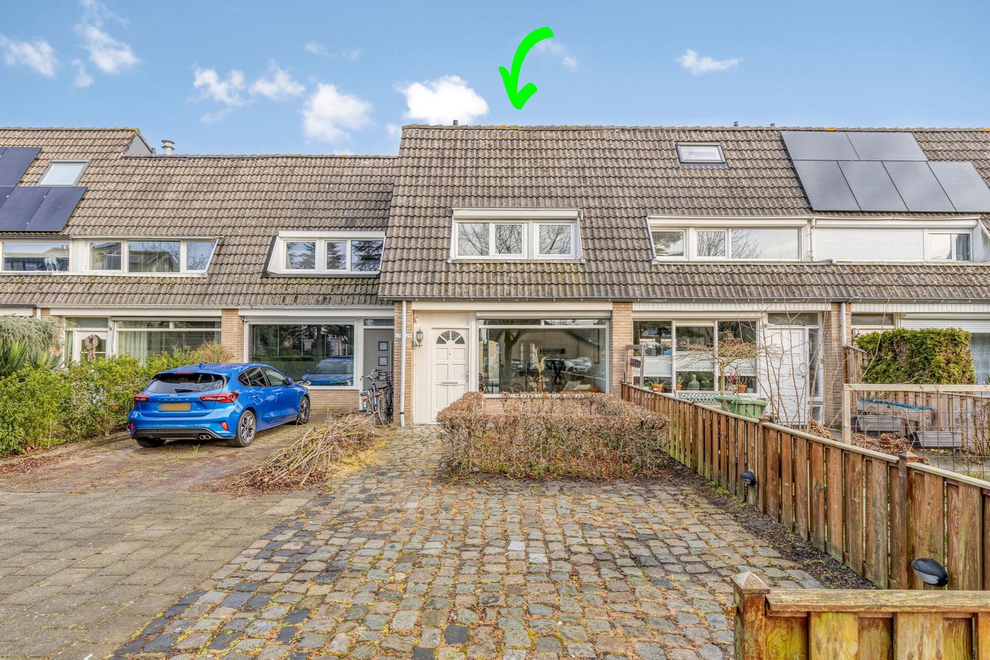 Je parkeert met gemak twee auto's voor de deur, wel zo prettig! Via de voordeur kom je binnen in de hal, die toegang geeft tot de woonkamer en de meterkast. Een fijne, praktische binnenkomst die direct een verzorgde indruk achterlaat.