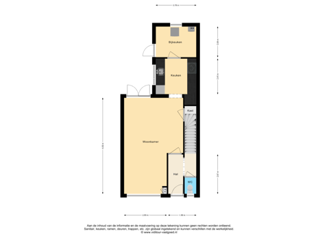 Aangrenzend bevindt zich de bijkeuken, geschikt voor het plaatsen van de wasmachine en het opbergen van extra keukenapparatuur. Vanuit hier is ook de tuin bereikbaar.