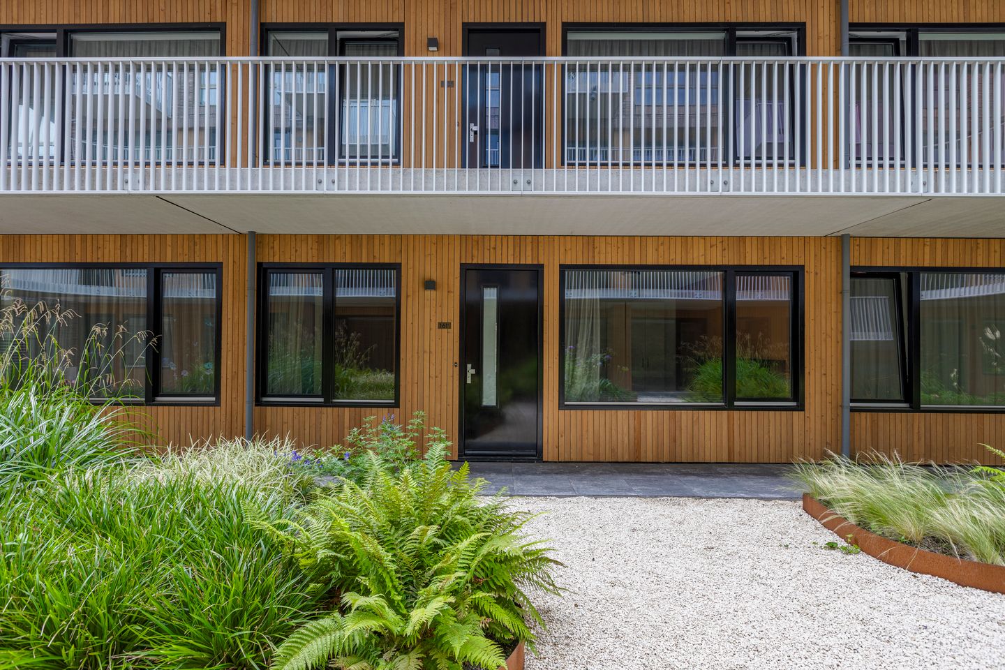 Dit gestoffeerde en gemeubileerde parterre-appartement combineert functionaliteit met comfort en biedt een ruime slaapkamer, een werk/kantoor en een lichte woonkamer met twee schuifpuien die toegang geven tot een eigen terras van circa 10 m2. Hier kun je genieten van de buitenlucht in je persoonlijke buitenruimte. De luxe keuken is voorzien van inbouwapparatuur zoals vaatwasser, combimagnetron, inductie kookplaat etc, wat bijdraagt aan de uitnodigende sfeer voor gezellige avonden en gastvrije diners. De ruime slaapkamer is verrijkt met grote ramen die zorgen voor veel natuurlijk licht en de moderne badkamer is uitgerust met een douchecabine, toilet en wastafelmeubel. Daarnaast biedt het appartement een inpandige berging met warmte terugwin installatie en wasmachine aansluiting. Het appartement is voorzien van een smaakvolle PVC-vloer met vloerverwarming wat zorgt voor een warme en behaaglijke leefomgeving. Het appartement is tevens voorzien van een separate berging in de onderbouw alsmede een gemeenschappelijke fietsenberging en er is een prive parkeerplaats te koop (op basis van beschikbaarheid).