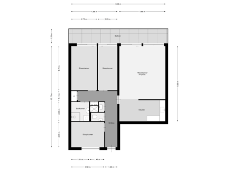 Het brede balkon van circa 10 meter! is een ideaal verlengstuk van de woonkamer en slaapkamers. Je geniet er van privacy en veel daglicht.
