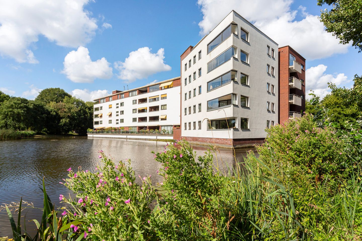 Dit appartement ligt op de 1e verdieping en biedt onder meer een ruime woonkamer met aan twee zijden veel natuurlijk lichtinval, een zonnig terras direct aan het water, drie ruime slaapkamers, 2 badkamers en een eigen parkeerplaats in de ondergelegen parkeergarage.
