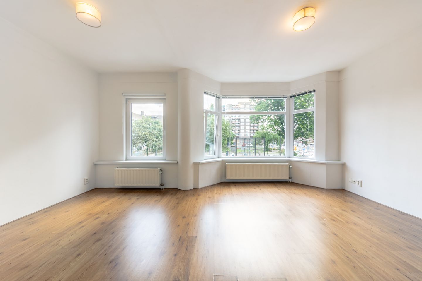 Entree, heerlijk lichte woonkamer .Dankzij de vele ramen geniet de ruimte van een aangename lichtinval daarnaast zorgt de erker voor extra charme. Er is een open keuken met keukenblok voorzien van kookplaat en afzuigkap. Verder is er een nette betegelde badkamer met wastafel, toilet en douche.
