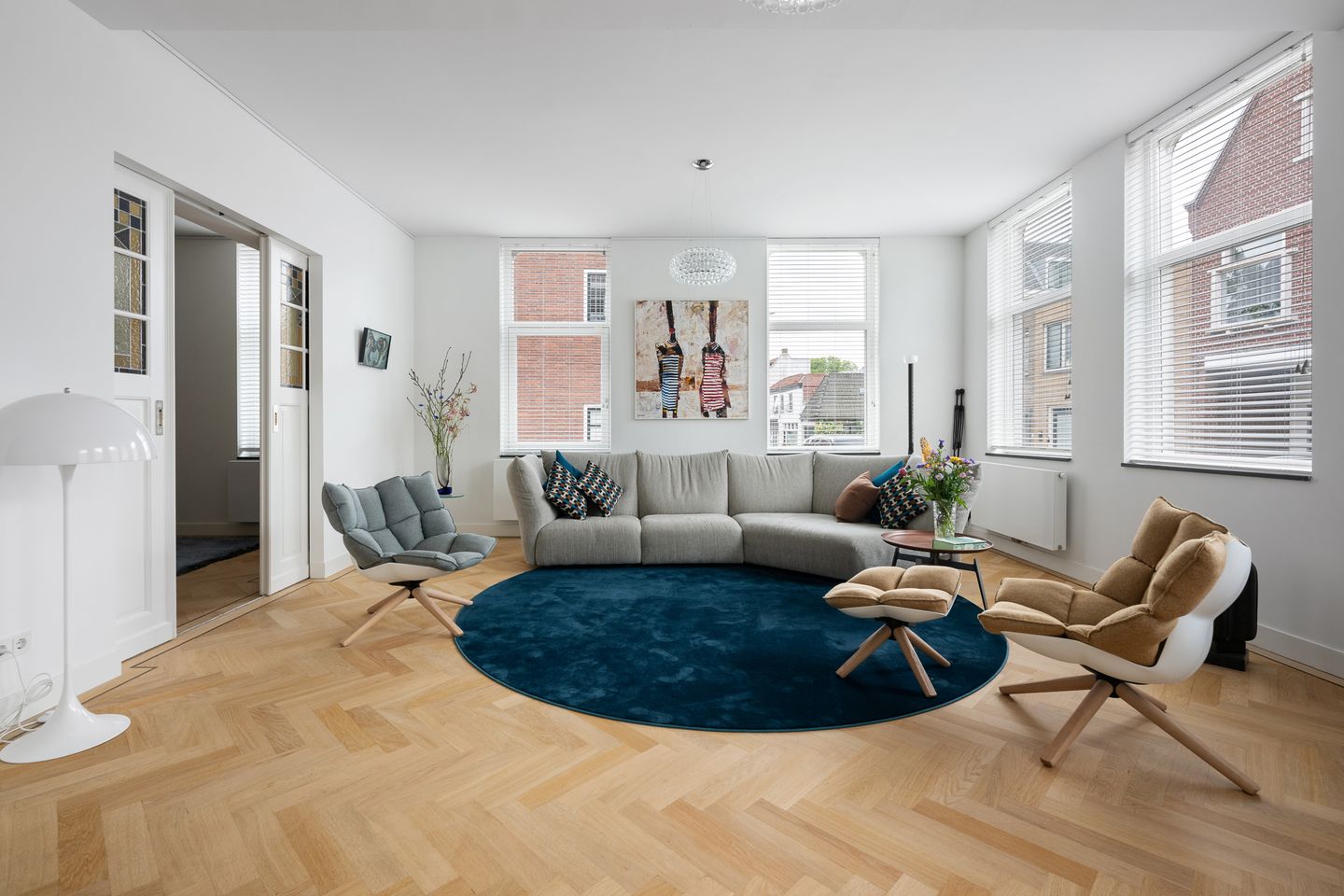 There is a beautiful front door behind which you enter the vestibule with a hardstone floor. To the right, through your own front door, you step directly into the living room. The delightful high ceilings of over 3 meters, and the tall windows with new frames in the old style and high-efficiency glazing, provide not only a sense of space but also the grandeur of yesteryear.