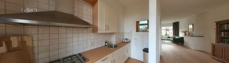 De royale woonkamer, met een afmeting van circa 11,60 x 4,50 meter, is voorzien van een fraaie houten vloer en beschikt aan de achterzijde over openslaande deuren die leiden naar een ruim balkon, wat zorgt voor veel natuurlijk licht en een aangename buitenruimte. De open keuken is uitgerust met diverse inbouwapparatuur.
