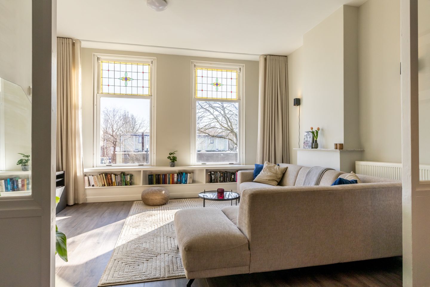 Via de trapopgang bereik je de eerste verdieping. Binnenkomst in de entree, met aan de rechterkant toegang tot de badkamer. Deze is praktisch ingedeeld en voorzien van een ruime douche, toilet, wastafelmeubel en een opstelplaats voor de wasmachine. Vanuit de hal stap je direct de woonkeuken in, het gezellige hart van de woning. Een fijne, open ruimte met keuken voorzien van diverse inbouwapparatuur (in 2025 voorzien van een Quooker en een Bora inductiekookplaat met ingebouwde afzuiging) en genoeg plek voor een eettafel. Dé plek waar koken, eten en borrelen samenkomen. Aan de achterzijde van het appartement ligt de slaapkamer. Door de ligging aan achterzijde weinig last van omgevingsgeluid. Een ruime kamer die over de volledige breedte van de woning is gesitueerd en daardoor heerlijk rustig aanvoelt. De slaapkamer is voorzien van een nieuwe inbouwkast tot plafond met walnootlook. De woonkamer bevindt zich aan de voorzijde. De woonkamer beschikt over een brede vensterbank waarop je tot het middaguur heerlijk comfortabel in het zonnetje van een kopje koffie kunt genieten. Dankzij de grote ramen geniet je hier van een prettige lichtinval én een leuk uitzicht op de groene Sionstraat, precies dat fijne Kralingse straatbeeld. De plafonds van de woning zijn hoger dan 3m, wat de woning zeer ruimtelijk maakt. Zowel de slaapkamer als de keuken bevatten kastruimte tot plafondhoogte, aangevuld met de berging in de hal is er ruimschoots opbergruimte.