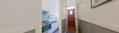De keuken bevindt zich eveneens aan de voorzijde en is uitgerust met een 4-pitsgaskookplaat, afzuigkap, oven en vaatwasser, een praktische en lichte ruimte om te koken.