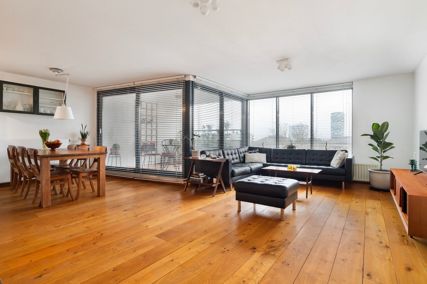 Door de gehele woning ligt een massief eikenhouten vloer. Het leefgedeelte van circa 42 m² voelt ruim en prettig aan en is eenvoudig in te richten met een gezellige zithoek en een fijne eethoek. Grote raampartijen laten het daglicht rijkelijk binnen en zorgen voor een open en vrij gevoel. De keuken sluit hier perfect op aan, waardoor koken en samenzijn moeiteloos samenkomen. De keuken is van alle gemakken voorzien en achter de keuken bevindt zich een ruime inpandige berging met plek voor de wasmachine, droger en extra opslag. Het royale balkon van circa 8 m² kijkt uit op het groene park en is een heerlijke plek om even te ontspannen in de ochtendzon.