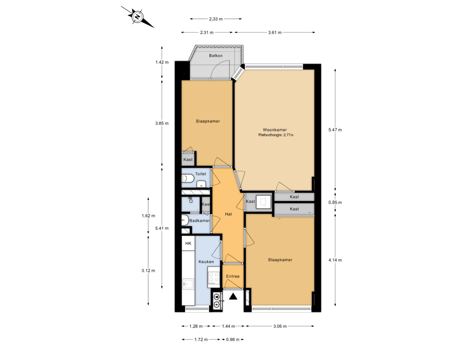 Derde etage: entree appartement via galerij, tochthal, gang, toilet met fonteintje, inpandige berging (met aansluiting voor de wasmachine), toegang tot de ruime woonkamer (ca. 5.47 x 3.61m) en de naastgelegen slaapkamer (ca. 3.85 x 2.31 m) met toegang tot het balkon. Doordat het appartement op de 3e verdieping aan de zuidwestkant is gelegen bieden deze kamers een fraai/vrij uitzicht en een prettige lichtinval.