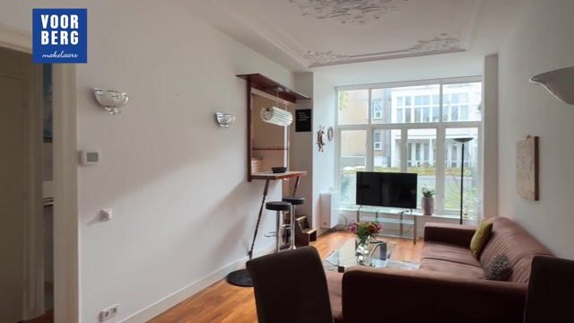 Via de entree bereikt u de vestibule en de gang, met toegang tot diverse vertrekken en een separaat toilet. Aan de voorzijde bevindt zich een sfeervolle slaapkamer, die middels openslaande deuren in verbinding staat met de lichte woonkamer. De ruime woonkamer van ca. 3 meter hoog, biedt toegang tot de keuken, welke is voorzien van een baropstelling en een eigentijds keukenblok met diverse inbouwapparatuur. De woonkamer beschikt over een fraai ornamentenplafond.