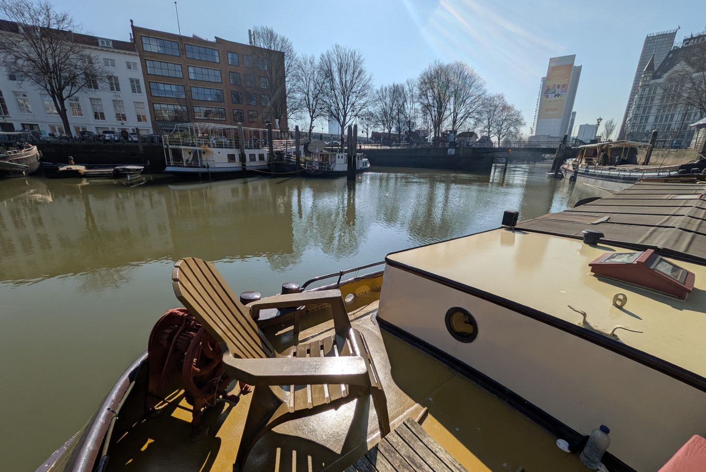 Eye-catcherCompact woonschip in de erfgoedhavens van Rotterdam