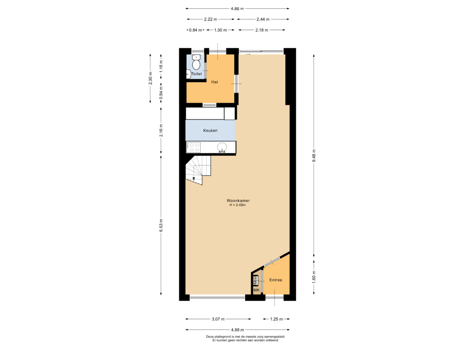 Binnenkomend via de entree kom je in een ruime hal met plek voor jassen en schoenen. De woonkamer ligt aan de voorkant van de woning en voelt heerlijk licht en ruim aan. De praktische indeling maakt het eenvoudig om hier een fijn zit- en eetgedeelte te creëren.