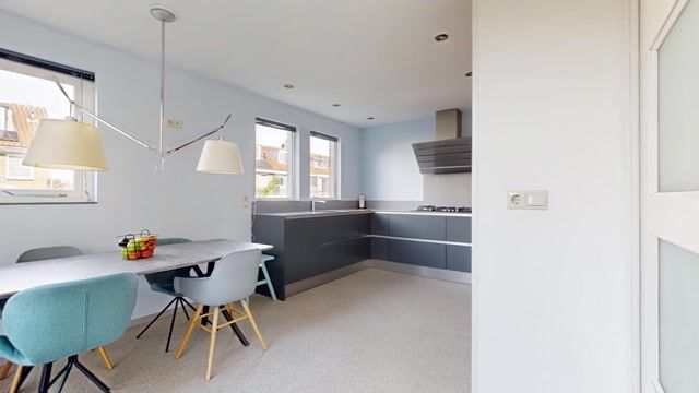 Een groot deel van de voormalige garage is op stijlvolle wijze omgebouwd tot een heerlijke woonkeuken – waar koken, tafelen en samenzijn centraal staan. Door de schuifpui komt er veel natuurlijk licht binnen.