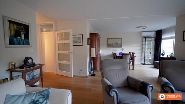 - Royale L-vormige woonkamer aan de achterzijde met openslaande deuren naar de achtertuin. De woonkamer is voorzien van fraaie eiken vloerdelen met vloerverwarming, heeft een strakke wandafwerking en is voorzien van airco;