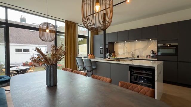 This luxurious semi-detached mansion from 1921 exudes the character of yesteryear. After a thorough renovation about four years ago, all the remaining original features were restored, and the house now exudes pure class! This magnificent house with unobstructed views is truly a gem. The high ceilings are immediately noticeable upon entering. What a characteristic and atmospheric entrance! You'll fall in love instantly! The spacious living room with its garden-facing open-plan kitchen and spectacular kitchen island is truly the eye-catcher of this house.